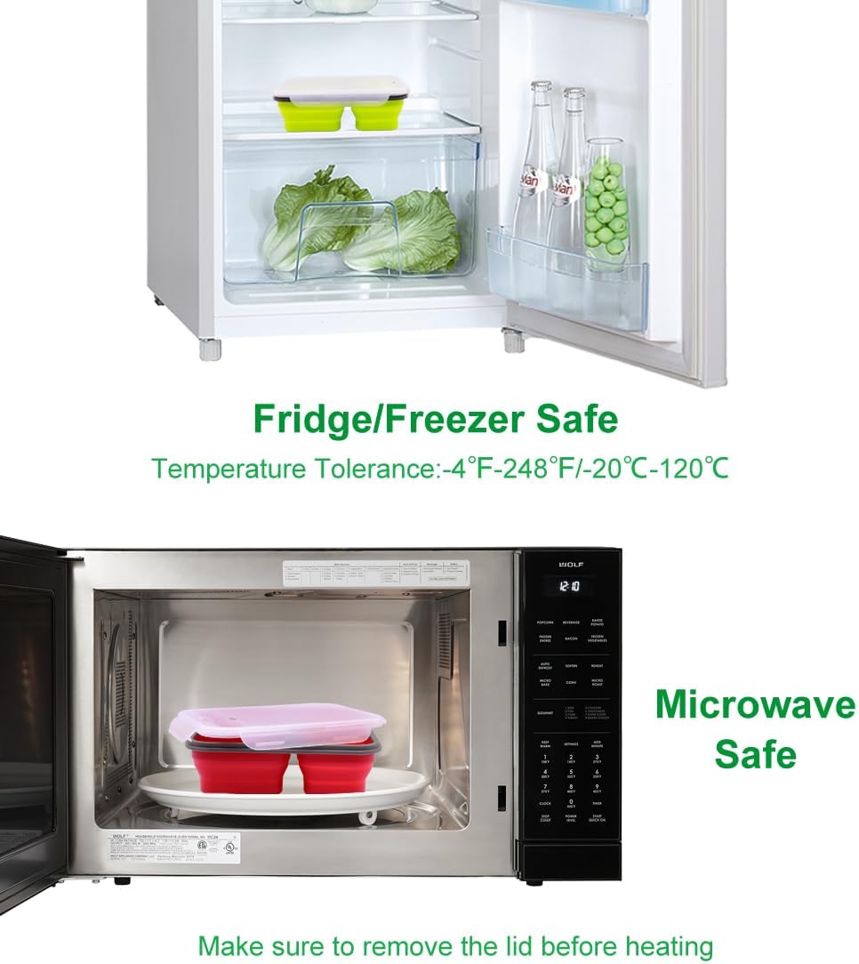 Introducing the 2 Pack Big Size Collapsible Silicone Bento Lunch Boxes With Lids! Perfect for on-the-go meals, these lunch boxes are designed with 3 compartments to keep your food separate and fresh. Made from high-quality, BPA-free silicone, these containers are safe to use in the microwave, dishwasher, and freezer for ultimate convenience. With a spacious capacity of 45.6oz, you can pack all your favorite meals and snacks with ease. Say goodbye to flimsy, single-use containers and upgrade to these durable and eco-friendly lunch boxes today!