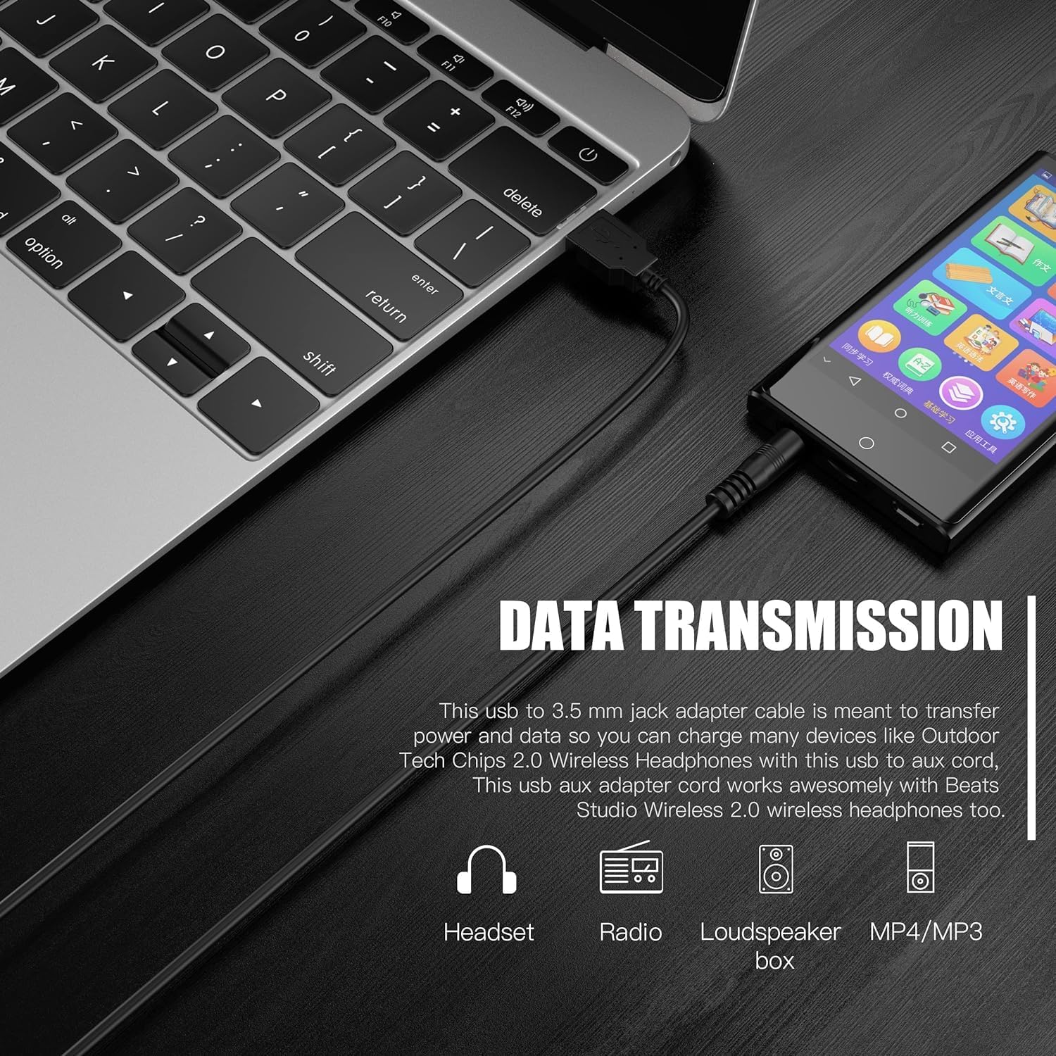 3.5mm USB Charger Cable,3.5mm Male AUX Audio Jack to USB Male Charge Cable Adapter Cord,Compatible with MP3,Headphones,Speakers,Voice Recorder and Any Other Devices with 3.5mm Port(3.3 ft)
