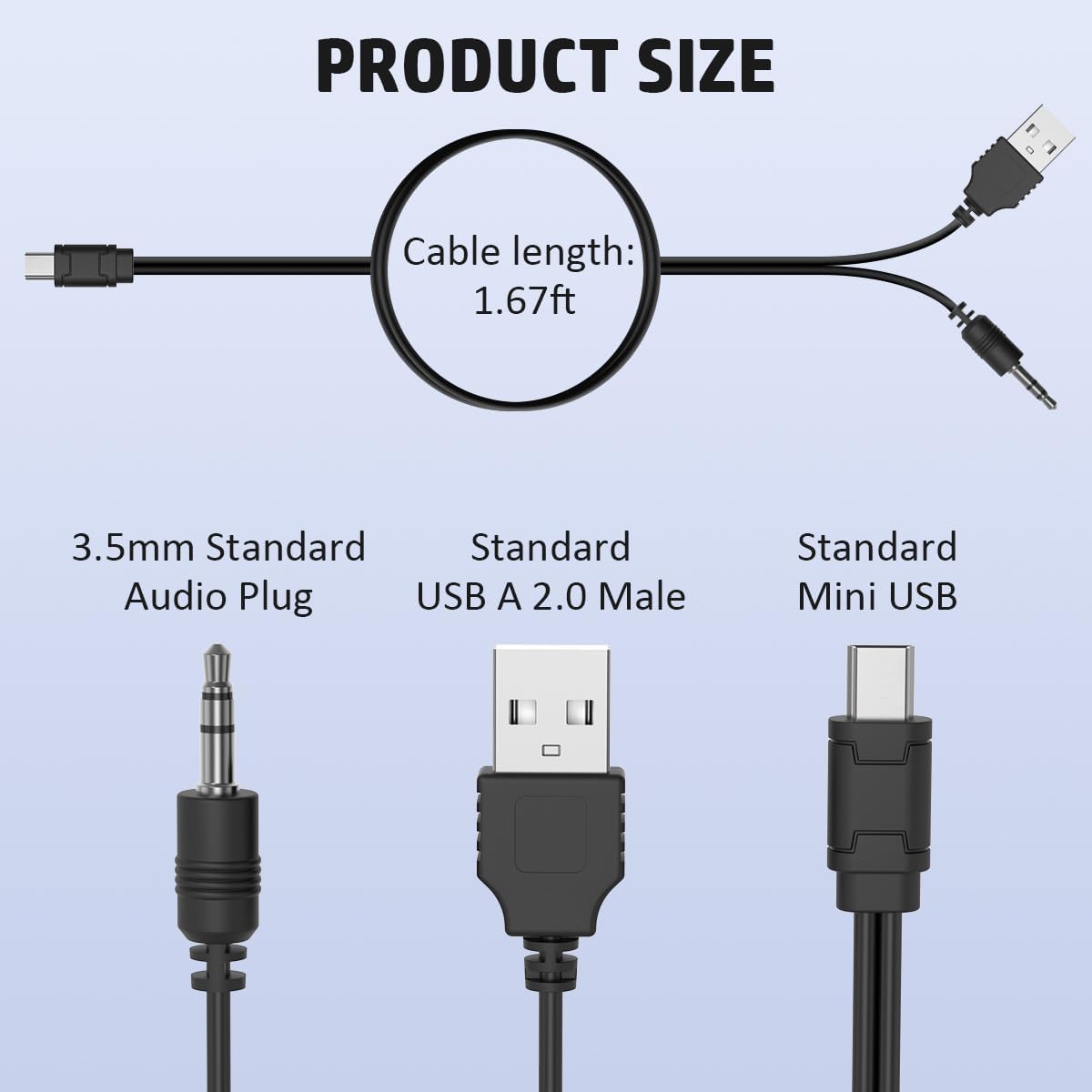 USB2.0 Charging Cord to Mini B Male and 3.5mm Jack Plug Audio Cable for iHome IHM60 IHM61 IHM59 Speakers MP3/MP4 Bluetooth Speaker (Mini USB)