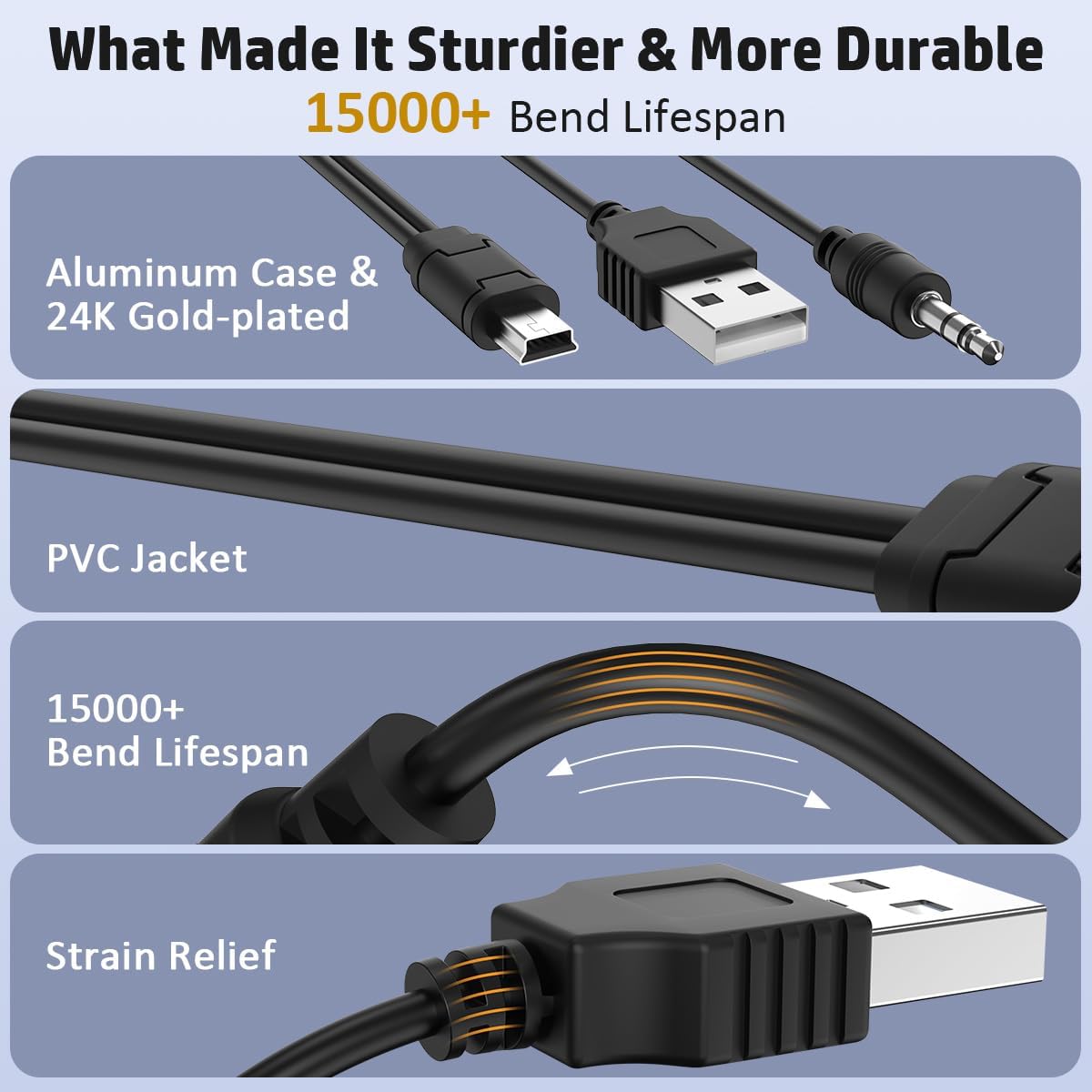 The USB 2.0 Charging Cord ensures a fast and efficient charging experience, while the 3.5mm Jack Plug Audio Cable delivers crisp, clear sound for all your favorite music and podcasts. The durable construction and reliable performance make this cable a must-have for any music lover.